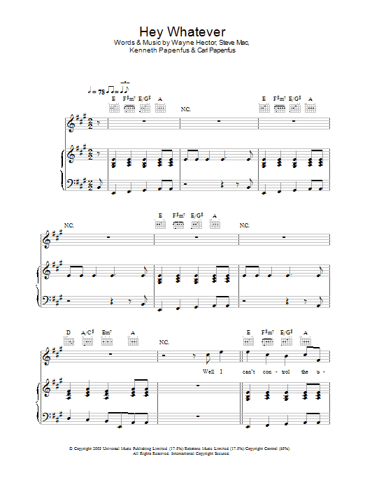 Quick facts Hey Whatever about digital sheet music