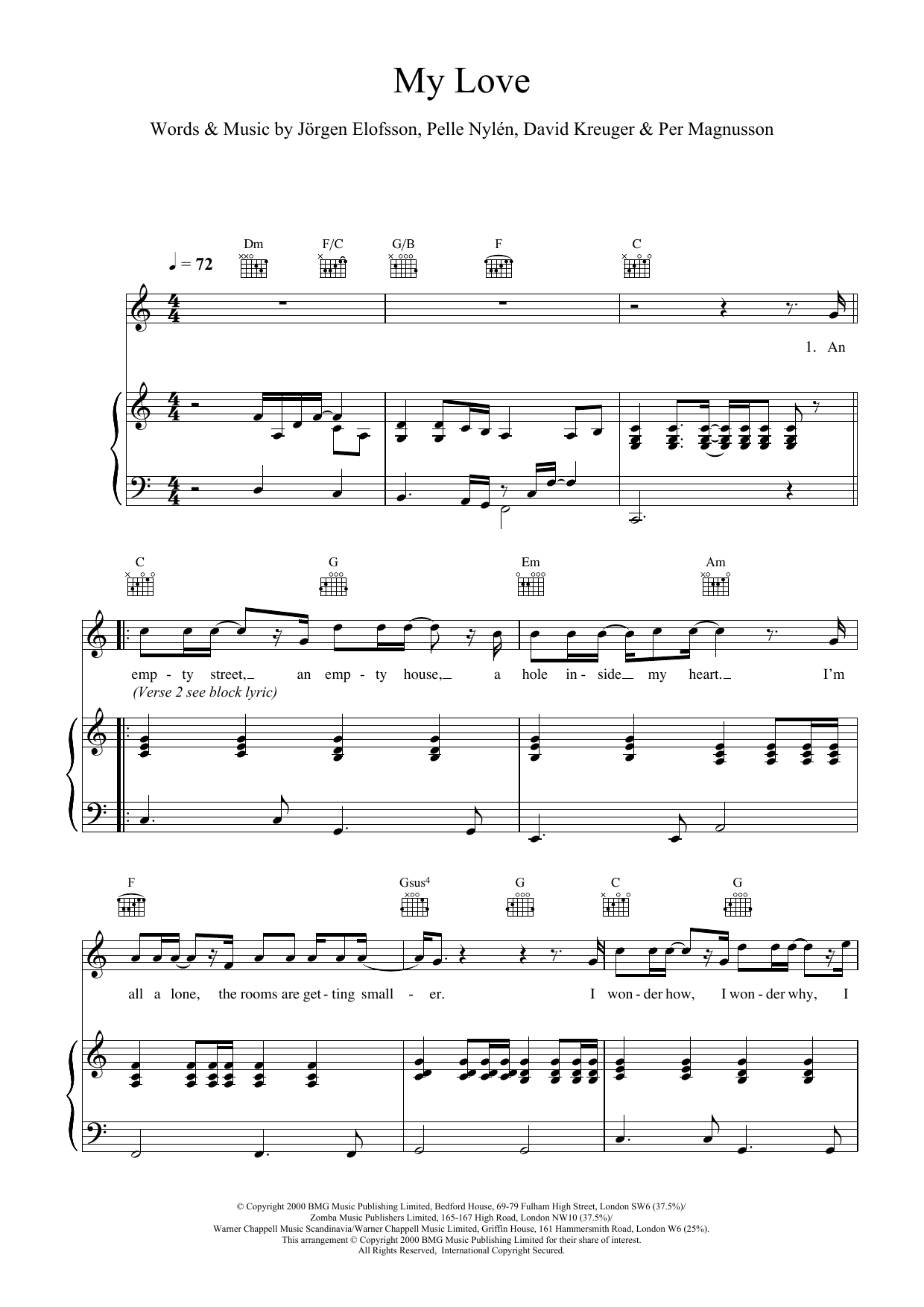 Download or print Westlife My Love sheet music, chords and digital score arranged for Violin Solo. This Pop score includes 2 page(s).