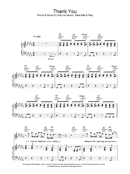 Download or print Westlife Thank You sheet music, chords and digital score arranged for Piano, Vocal & Guitar Chords. This Pop score includes 7 page(s).