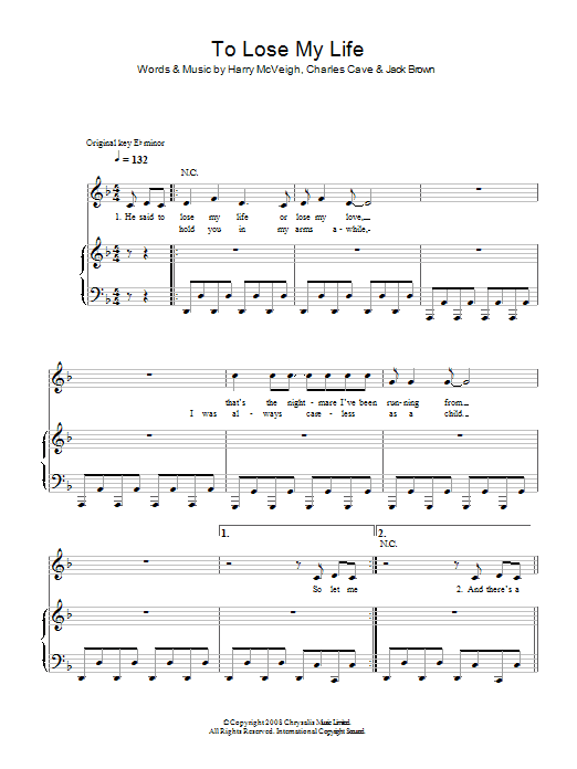 Quick facts To Lose My Life about digital sheet music