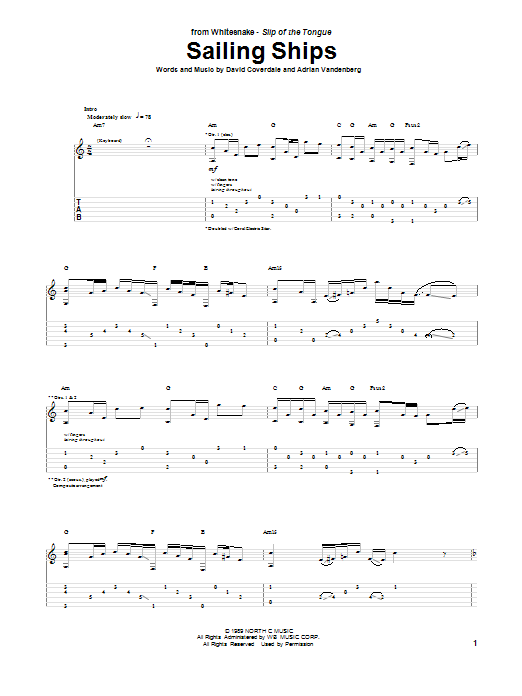 Download or print Whitesnake Sailing Ships sheet music, chords and digital score arranged for Guitar Tab. This Pop score includes 30 page(s).