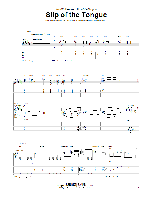 Download or print Whitesnake Slip Of The Tongue sheet music, chords and digital score arranged for Guitar Tab. This Pop score includes 26 page(s).