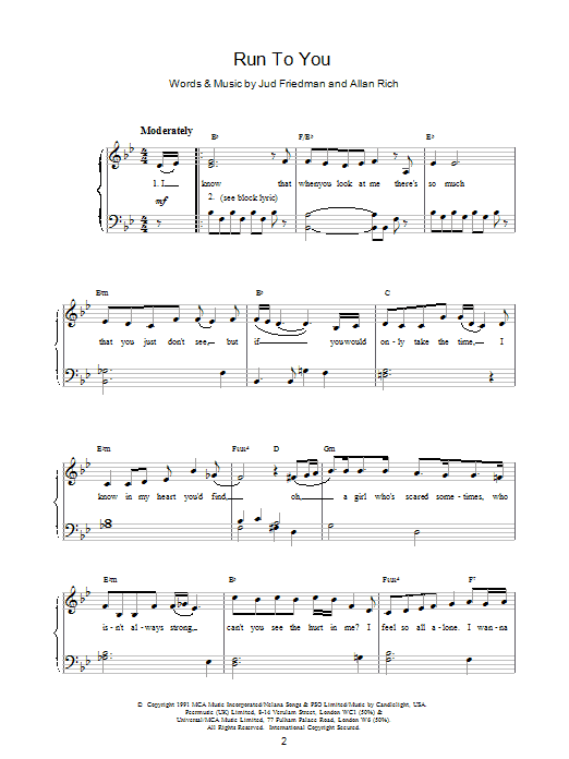 Download or print Whitney Houston Run To You sheet music, chords and digital score arranged for Piano, Vocal & Guitar Chords. This Pop score includes 5 page(s).