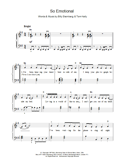 Download or print Whitney Houston So Emotional sheet music, chords and digital score arranged for Lead Sheet / Fake Book. This Pop score includes 2 page(s).