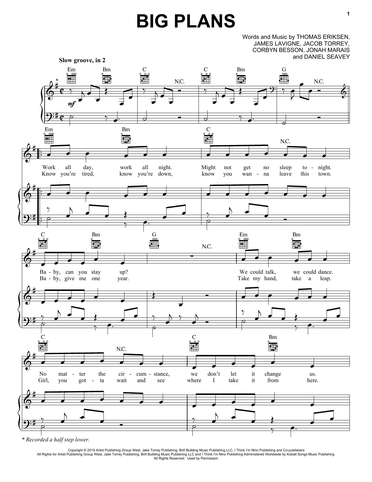Download or print Why Don't We Big Plans sheet music, chords and digital score arranged for Piano, Vocal & Guitar Chords (Right-Hand Melody). This Pop score includes 5 page(s).