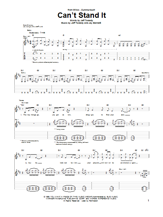 Download or print Wilco Can't Stand It sheet music, chords and digital score arranged for Guitar Tab. This Rock score includes 6 page(s).
