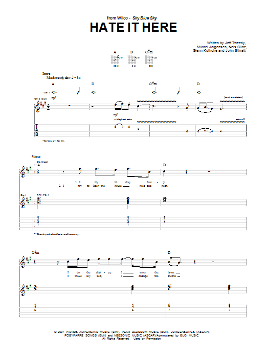 Download or print Wilco Hate It Here sheet music, chords and digital score arranged for Guitar Tab. This Pop score includes 10 page(s).