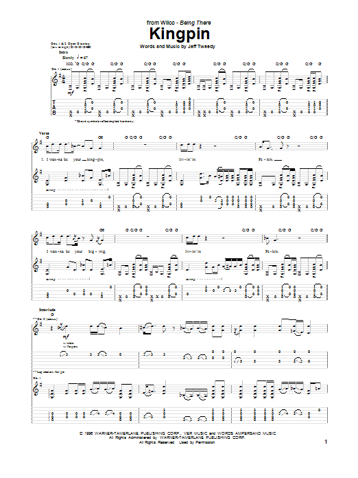 Download or print Wilco Kingpin sheet music, chords and digital score arranged for Guitar Tab. This Alternative score includes 15 page(s).