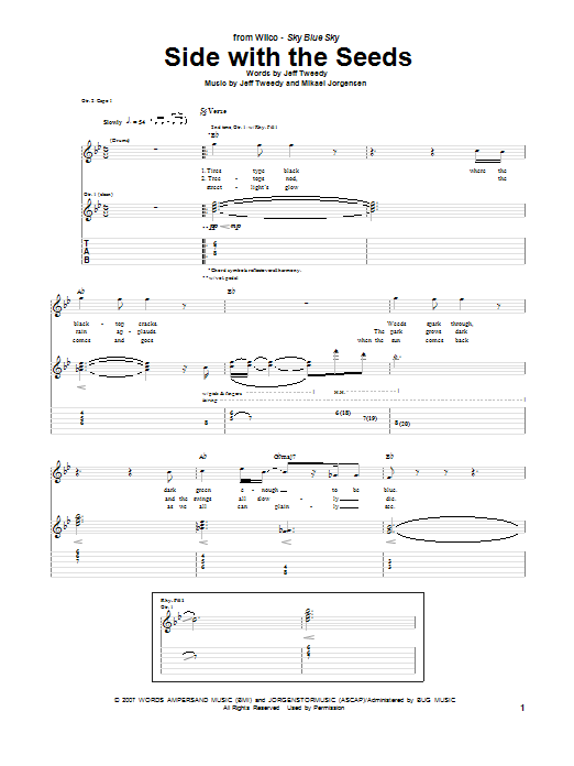 Download or print Wilco Side With The Seeds sheet music, chords and digital score arranged for Guitar Tab. This Alternative score includes 8 page(s).