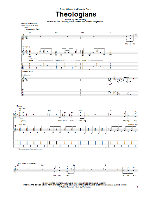 Download or print Wilco Theologians sheet music, chords and digital score arranged for Guitar Tab. This Alternative score includes 7 page(s).