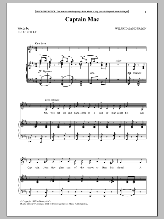 Download or print Wilfrid Sanderson Captain Mac sheet music, chords and digital score arranged for Piano & Vocal. This Folk score includes 8 page(s).