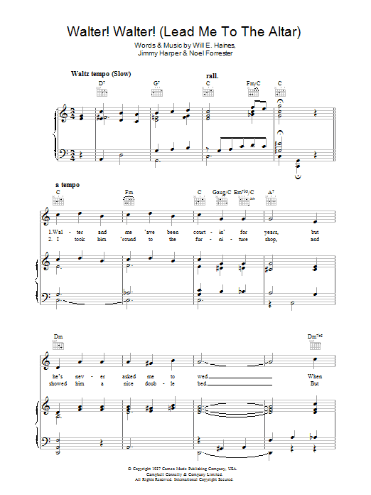 Download or print Will E. Haines Walter, Walter (Lead Me To The Altar) sheet music, chords and digital score arranged for Piano, Vocal & Guitar Chords. This Pop score includes 5 page(s).