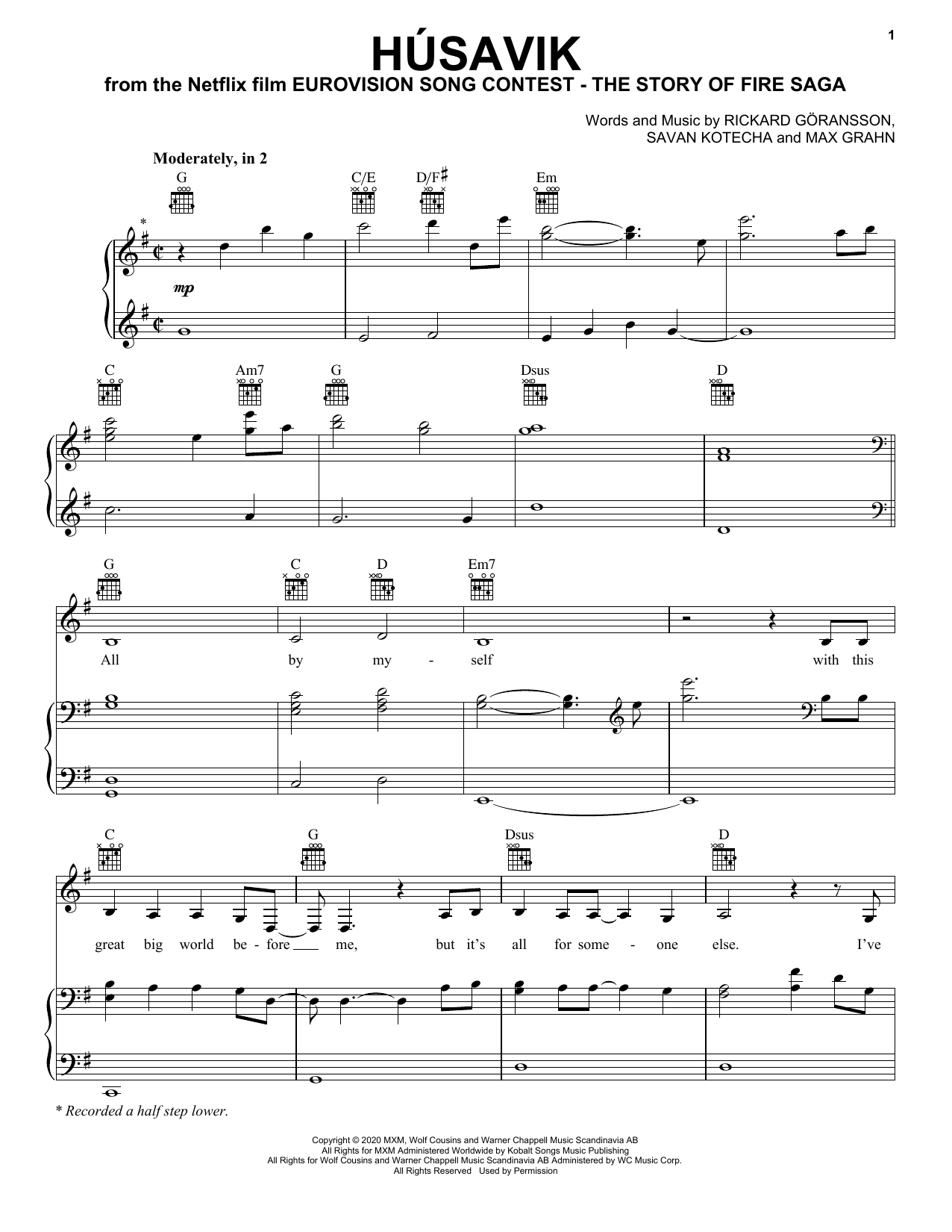 Download or print Will Ferrell & My Marianne Húsavik (from Eurovision Song Contest: The Story of Fire Saga) sheet music, chords and digital score arranged for Piano, Vocal & Guitar Chords (Right-Hand Melody). This Film/TV score includes 6 page(s).
