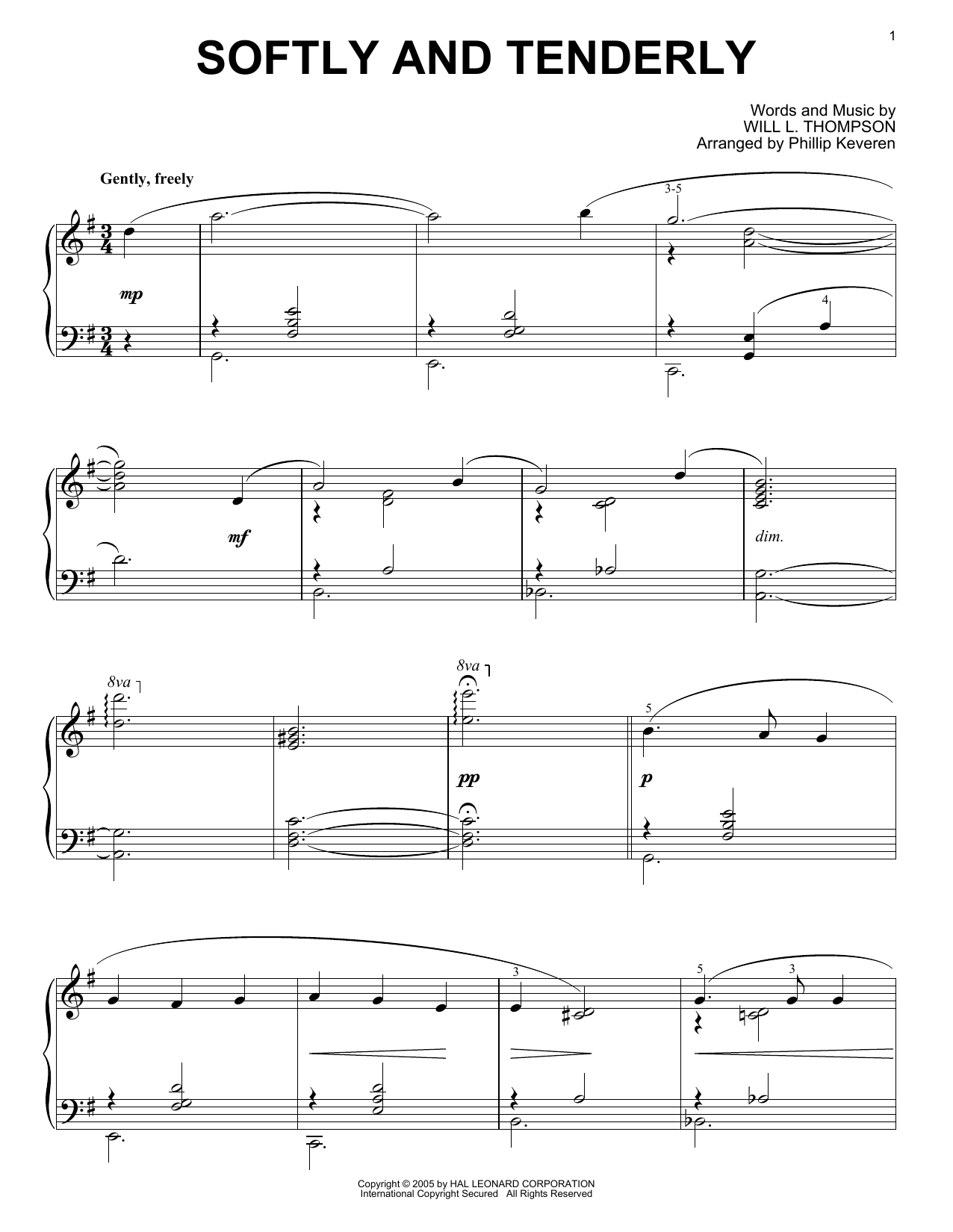 Download or print Will L. Thompson Softly And Tenderly [Jazz version] (arr. Phillip Keveren) sheet music, chords and digital score arranged for Piano Solo. This Christian score includes 5 page(s).