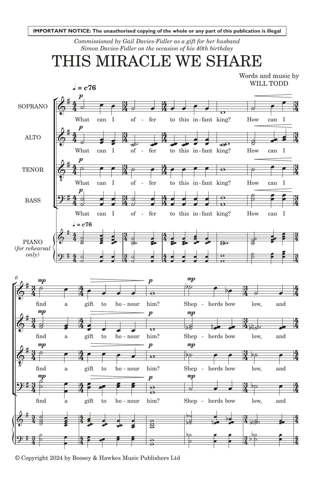 Download or print Will Todd This Miracle We Share sheet music, chords and digital score arranged for Choir. This Winter score includes 6 page(s).