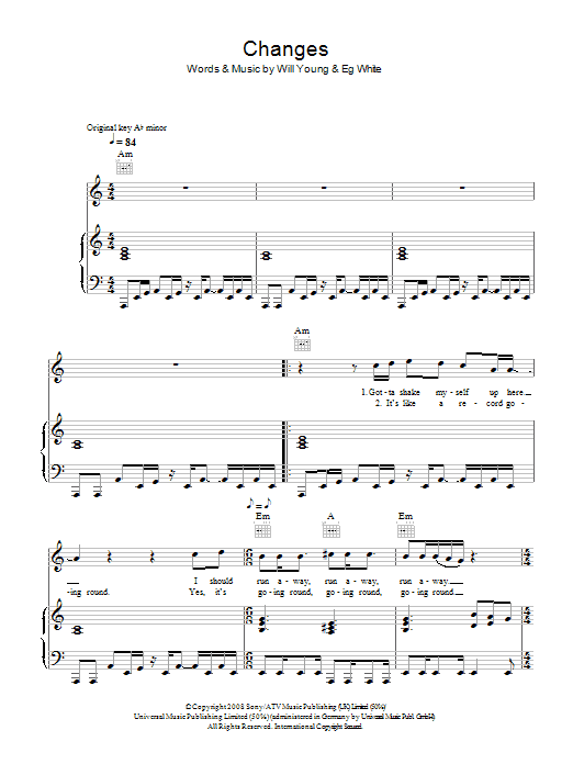 Download or print Will Young Changes sheet music, chords and digital score arranged for Piano, Vocal & Guitar Chords. This Pop score includes 5 page(s).