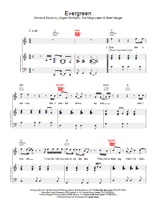 Download or print Will Young Evergreen sheet music, chords and digital score arranged for Piano Chords/Lyrics. This Pop score includes 2 page(s).