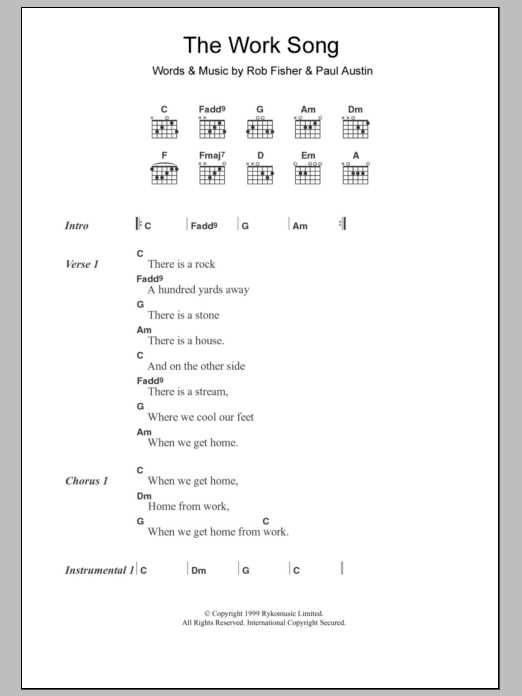 Download or print Willard Grant Conspiracy The Work Song sheet music, chords and digital score arranged for Guitar Chords/Lyrics. This Country score includes 3 page(s).