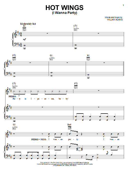 Download or print William Adams Hot Wings (I Wanna Party) sheet music, chords and digital score arranged for Piano, Vocal & Guitar Chords (Right-Hand Melody). This Children score includes 8 page(s).
