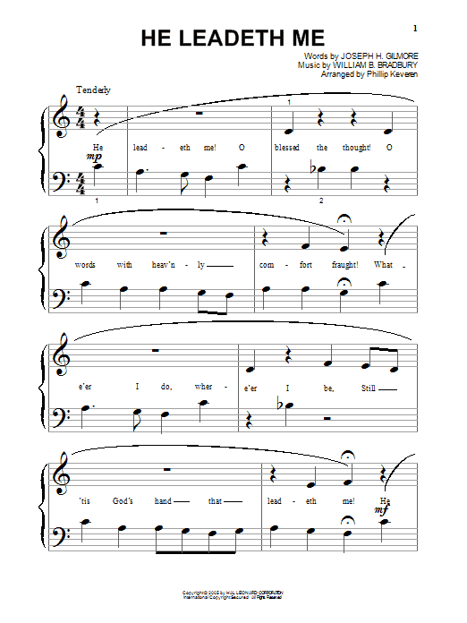 Download or print William B. Bradbury He Leadeth Me (arr. Phillip Keveren) sheet music, chords and digital score arranged for Beginning Piano Solo. This Christian score includes 2 page(s).