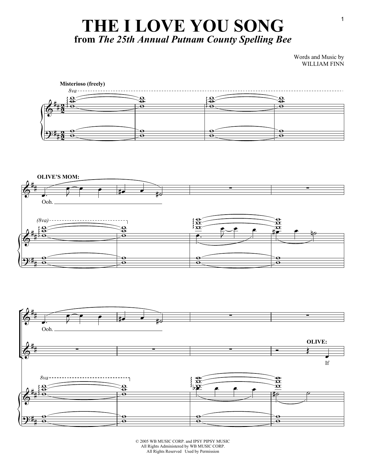 Download or print William Finn The I Love You Song sheet music, chords and digital score arranged for Piano & Vocal. This Musical/Show score includes 15 page(s).