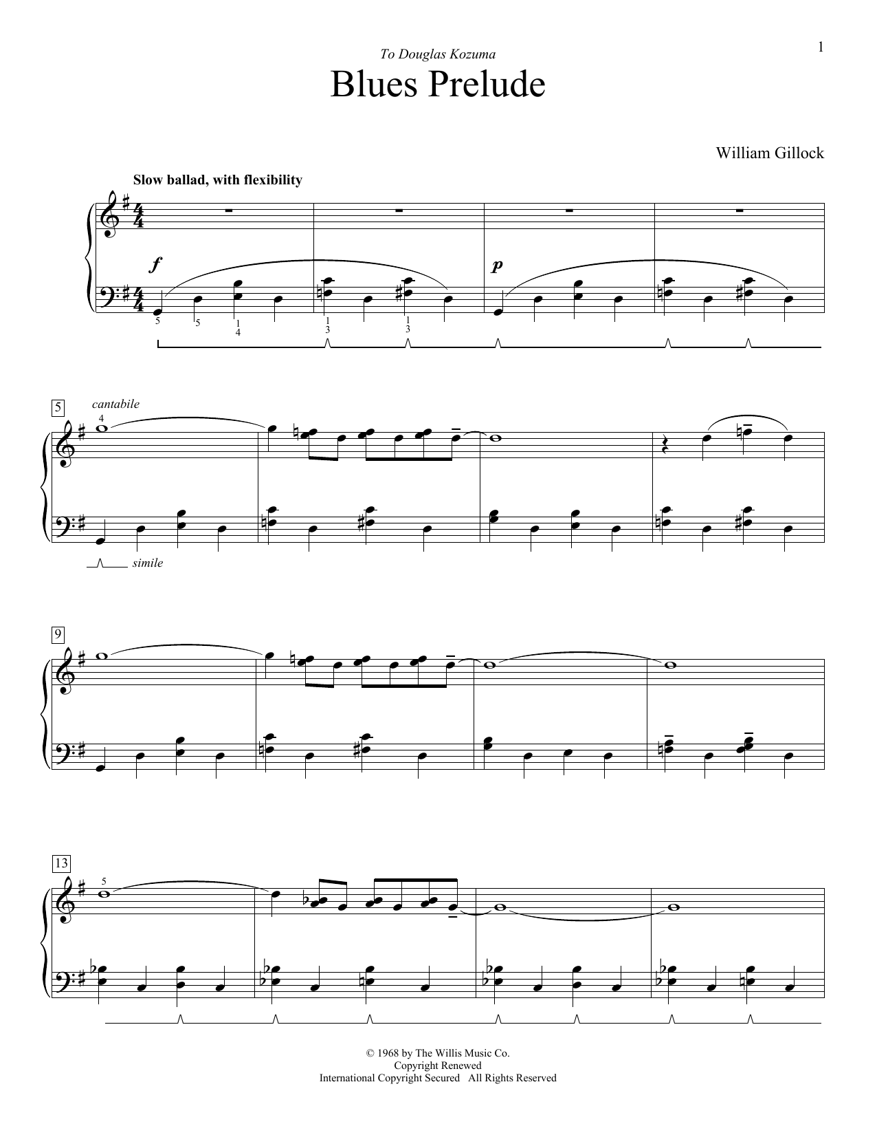 Download or print William Gillock Blues Prelude sheet music, chords and digital score arranged for Educational Piano. This Instructional score includes 3 page(s).