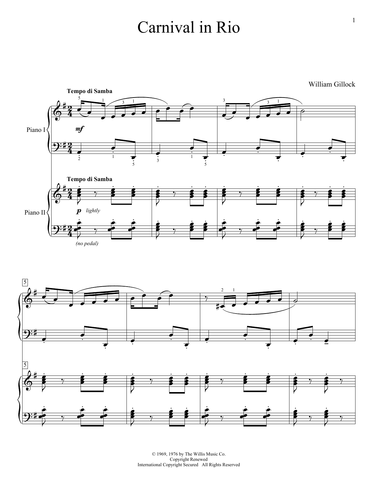 Download or print William Gillock Carnival In Rio sheet music, chords and digital score arranged for Educational Piano. This Pop score includes 2 page(s).