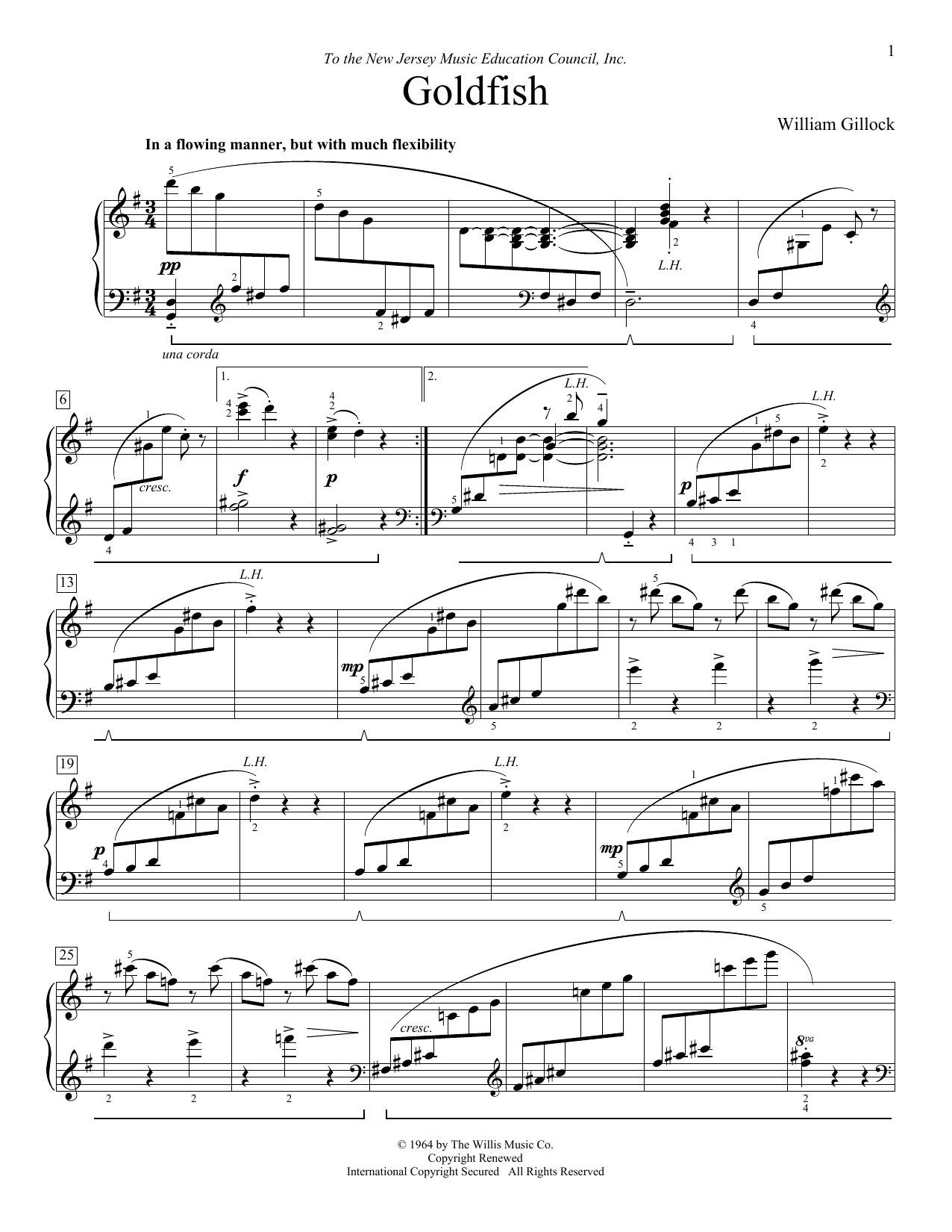 Download or print William Gillock Goldfish sheet music, chords and digital score arranged for Educational Piano. This Instructional score includes 3 page(s).
