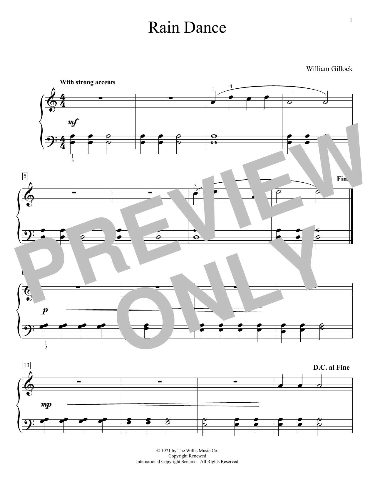 Download or print William Gillock Rain Dance sheet music, chords and digital score arranged for Educational Piano. This Instructional score includes 1 page(s).