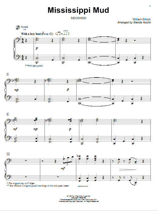 Download or print William Gillock Mississippi Mud sheet music, chords and digital score arranged for Educational Piano. This Instructional score includes 2 page(s).