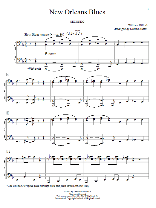 Download or print William Gillock New Orleans Blues sheet music, chords and digital score arranged for Educational Piano. This Instructional score includes 2 page(s).