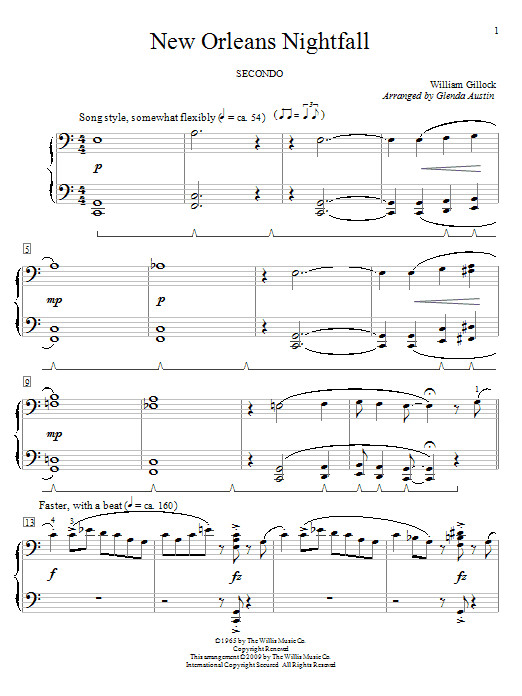 Download or print William Gillock New Orleans Nightfall sheet music, chords and digital score arranged for Educational Piano. This Instructional score includes 2 page(s).