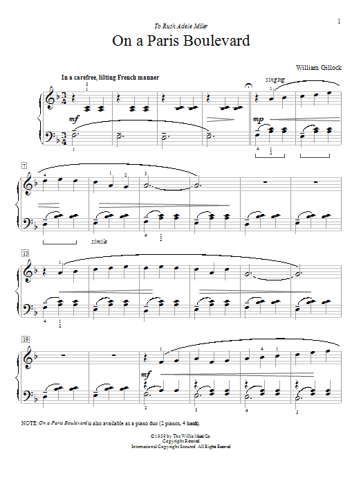 Download or print William Gillock On A Paris Boulevard sheet music, chords and digital score arranged for Educational Piano. This Classical score includes 4 page(s).