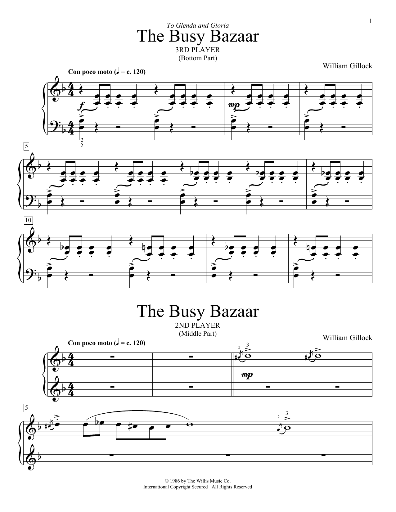 Download or print William Gillock The Busy Bazaar sheet music, chords and digital score arranged for Piano Duet. This Classical score includes 8 page(s).