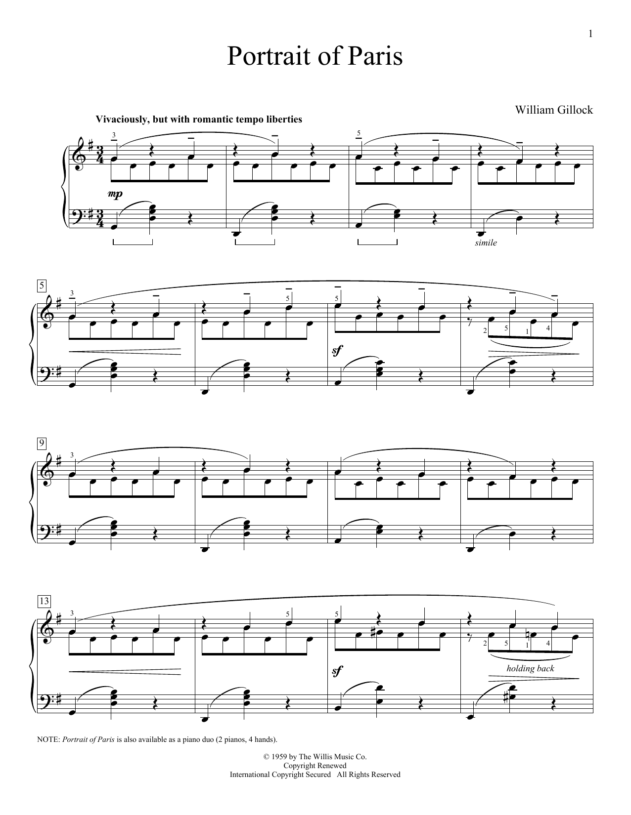 Download or print William Gillock Portrait Of Paris sheet music, chords and digital score arranged for Educational Piano. This Instructional score includes 4 page(s).