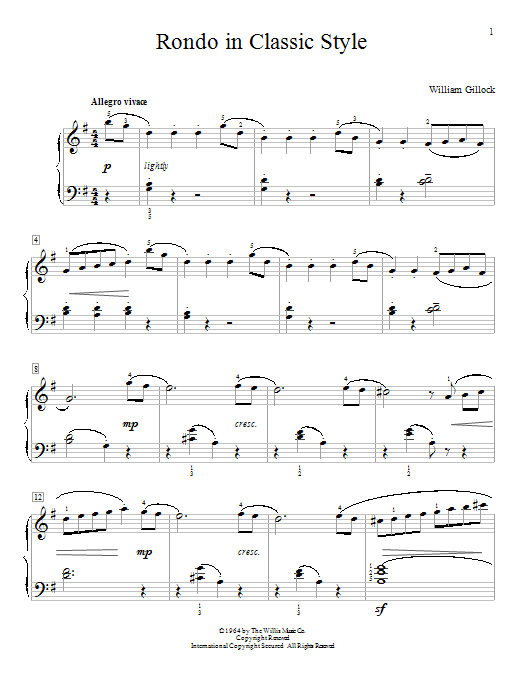 Download or print William Gillock Rondo In Classic Style sheet music, chords and digital score arranged for Educational Piano. This Classical score includes 3 page(s).