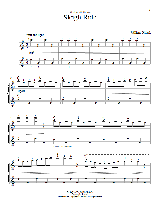 Download or print William Gillock Sleigh Ride sheet music, chords and digital score arranged for Educational Piano. This Classical score includes 4 page(s).