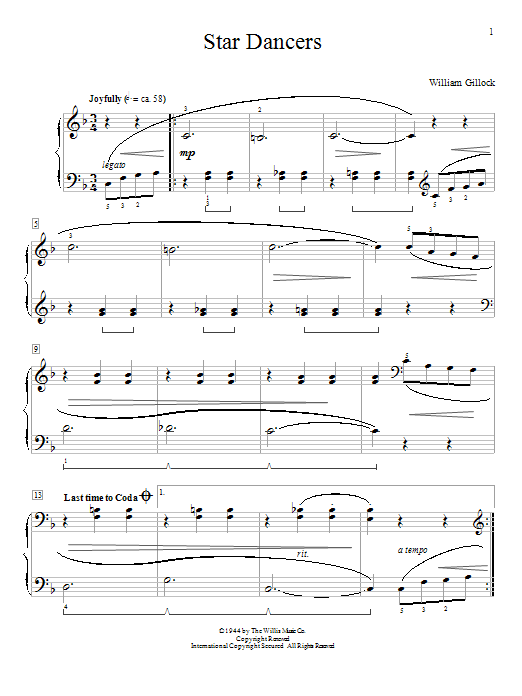 Download or print William Gillock Star Dancers sheet music, chords and digital score arranged for Educational Piano. This Pop score includes 2 page(s).