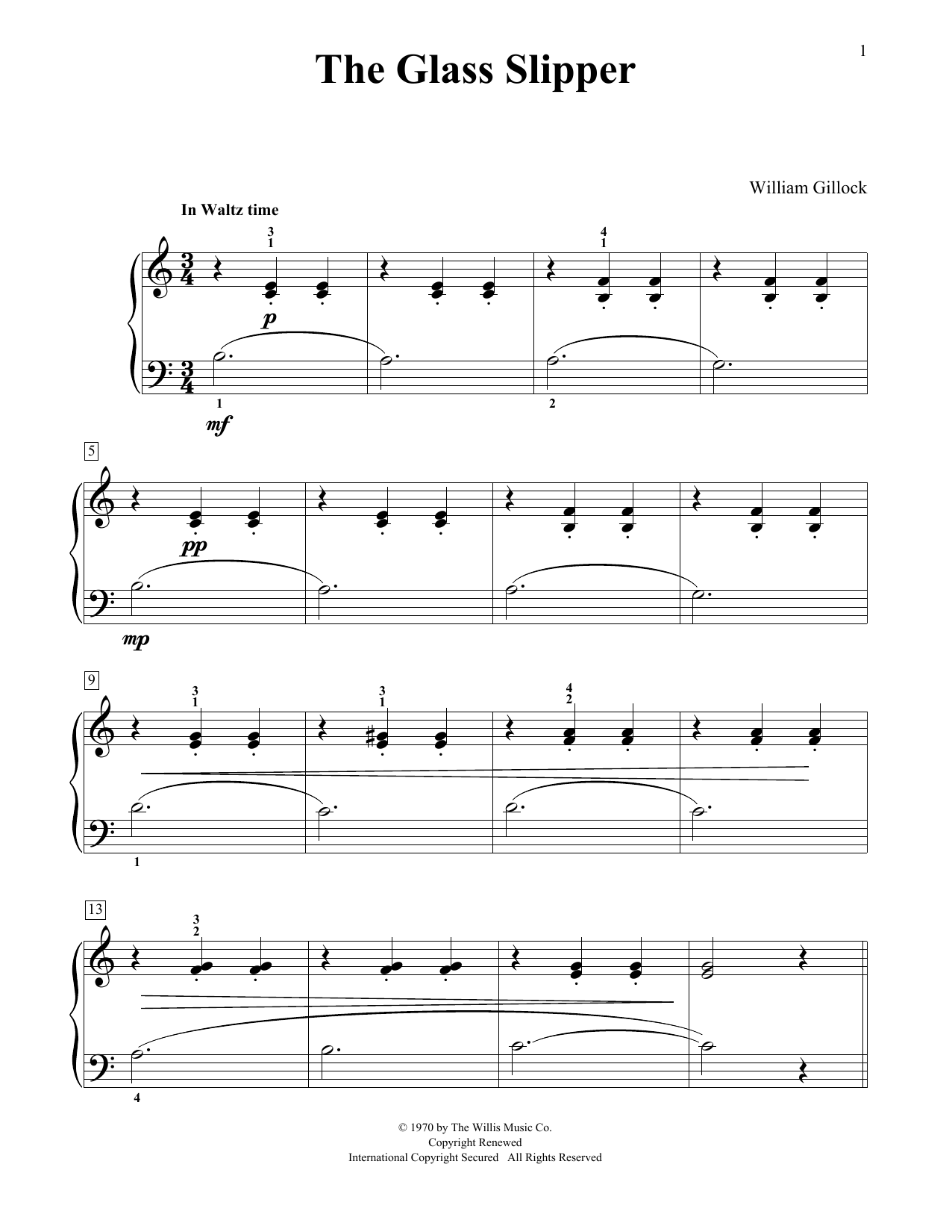 Download or print William Gillock The Glass Slipper sheet music, chords and digital score arranged for Educational Piano. This Classical score includes 3 page(s).