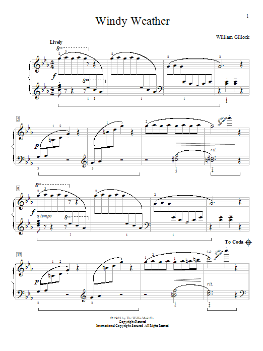 Download or print William Gillock Windy Weather sheet music, chords and digital score arranged for Educational Piano. This Classical score includes 2 page(s).
