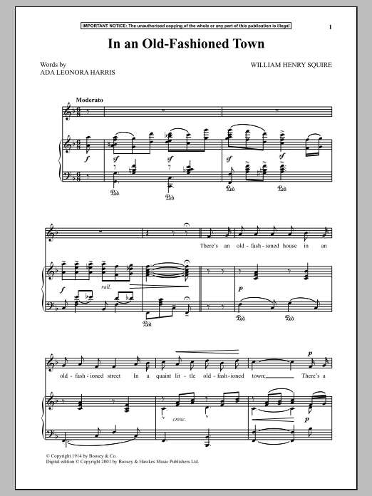 Download or print William Henry Squire In An Old-Fashioned Town sheet music, chords and digital score arranged for Piano & Vocal. This Folk score includes 4 page(s).