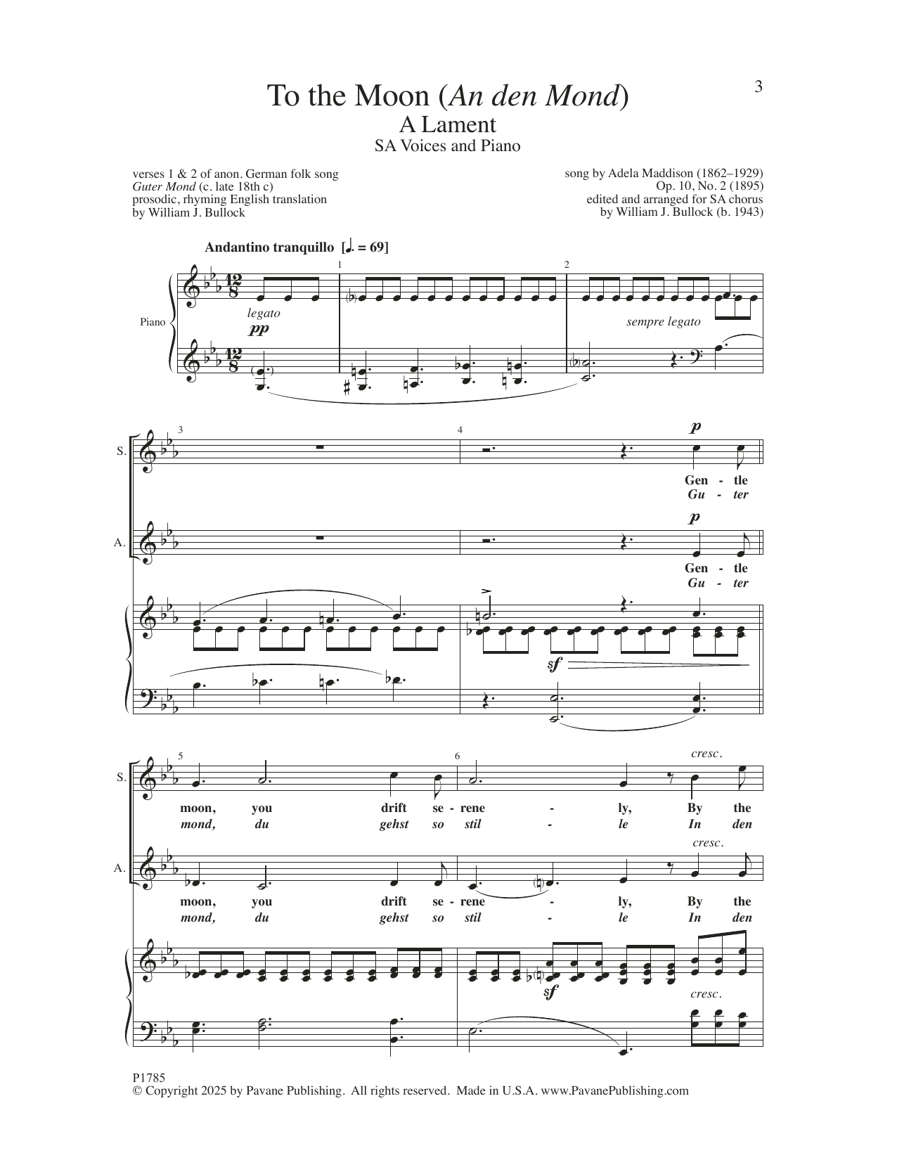 Download or print William J. Bullock To The Moon (A den Mond) sheet music, chords and digital score arranged for Choir. This Concert score includes 9 page(s).