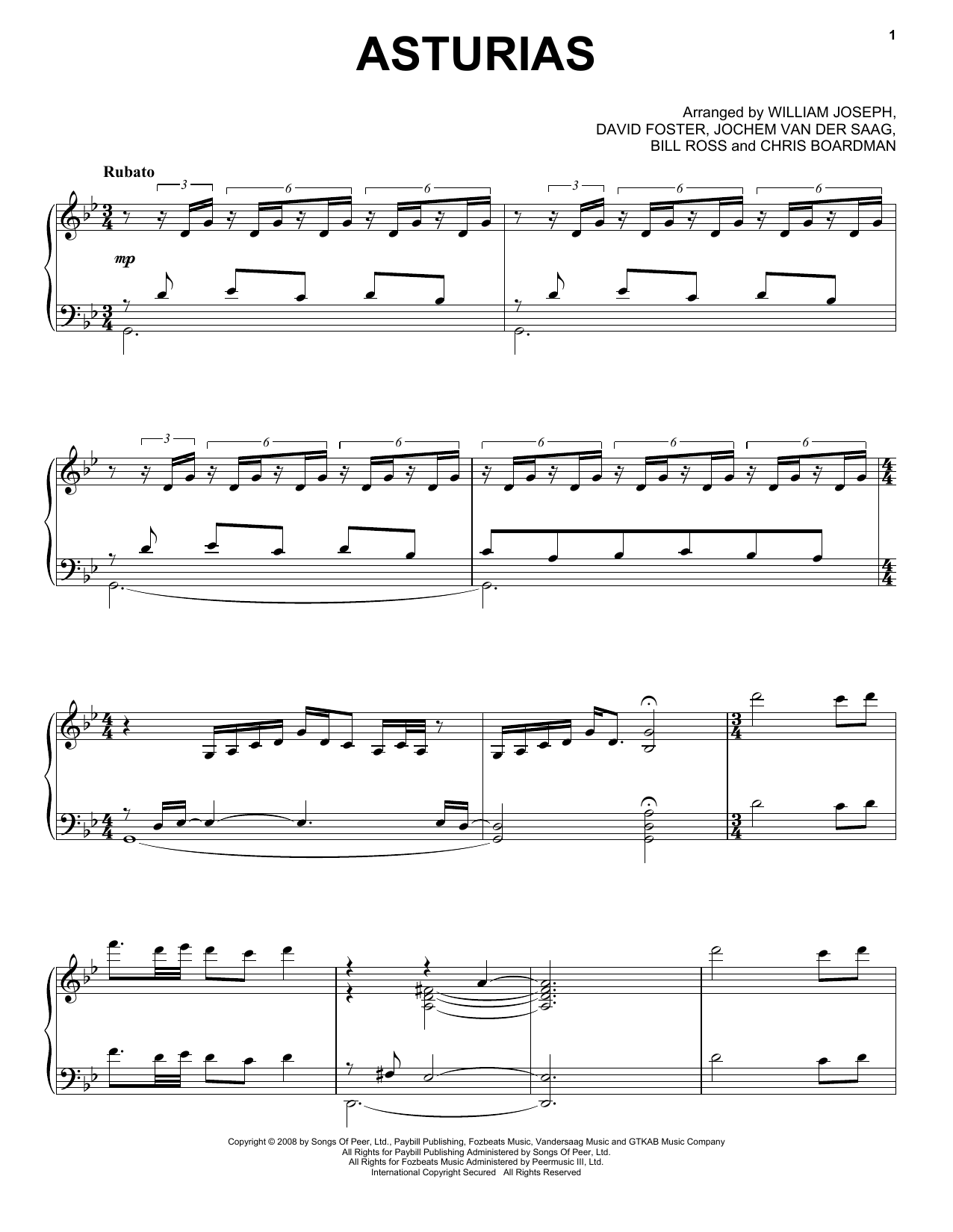 Download or print William Joseph Asturias sheet music, chords and digital score arranged for Piano Solo. This Classical score includes 8 page(s).