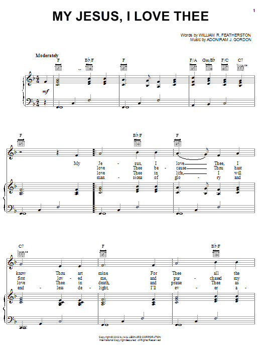 Download or print William R. Featherstone My Jesus, I Love Thee sheet music, chords and digital score arranged for Piano, Vocal & Guitar Chords (Right-Hand Melody). This Christian score includes 2 page(s).