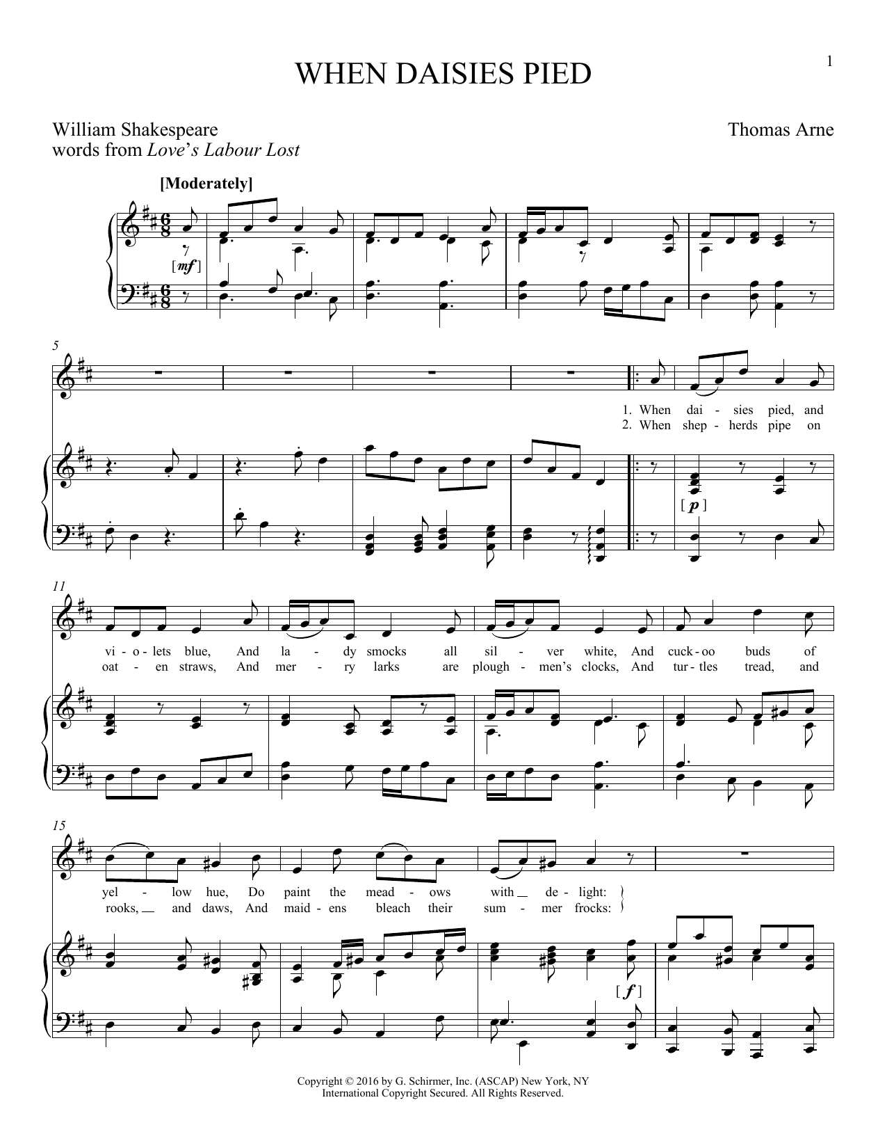 Download or print William Shakespeare When Daisies Pied sheet music, chords and digital score arranged for Piano & Vocal. This Classical score includes 2 page(s).