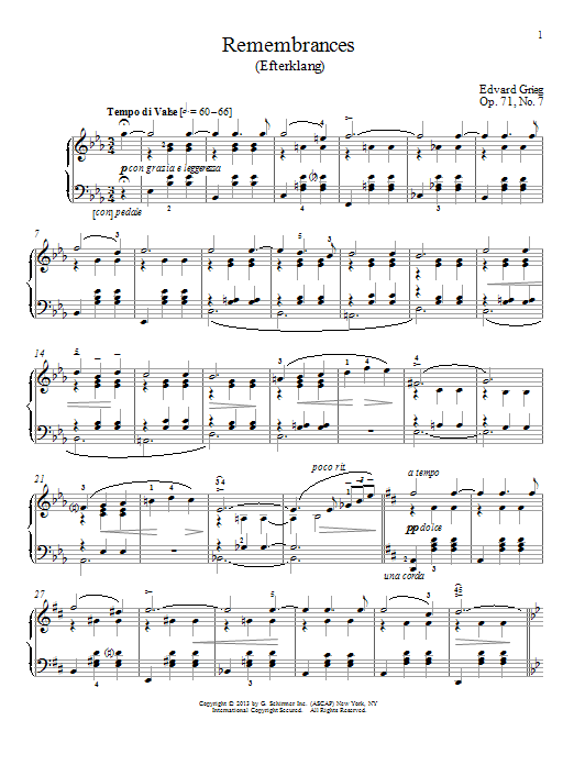 Download or print Edvard Grieg Remembrances (Efterklang), Op. 71, No. 7 sheet music, chords and digital score arranged for Piano Solo. This Classical score includes 2 page(s).