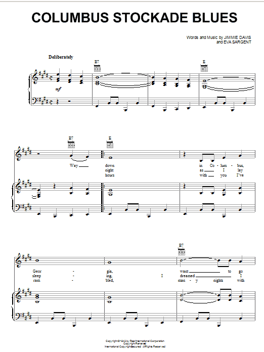 Download or print Willie Nelson Columbus Stockade Blues sheet music, chords and digital score arranged for Piano, Vocal & Guitar Chords (Right-Hand Melody). This Country score includes 3 page(s).