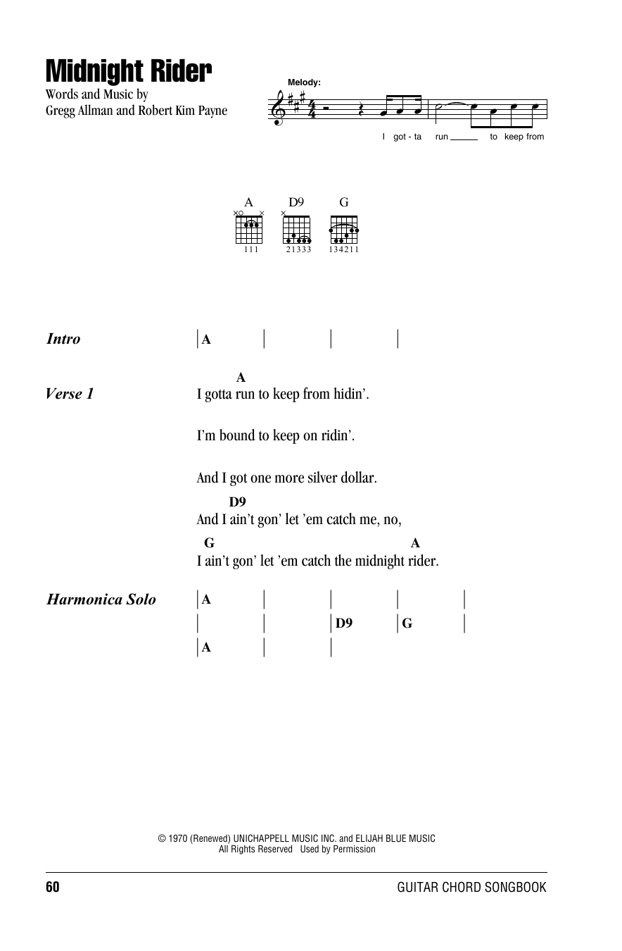 Quick facts Midnight Rider about digital sheet music