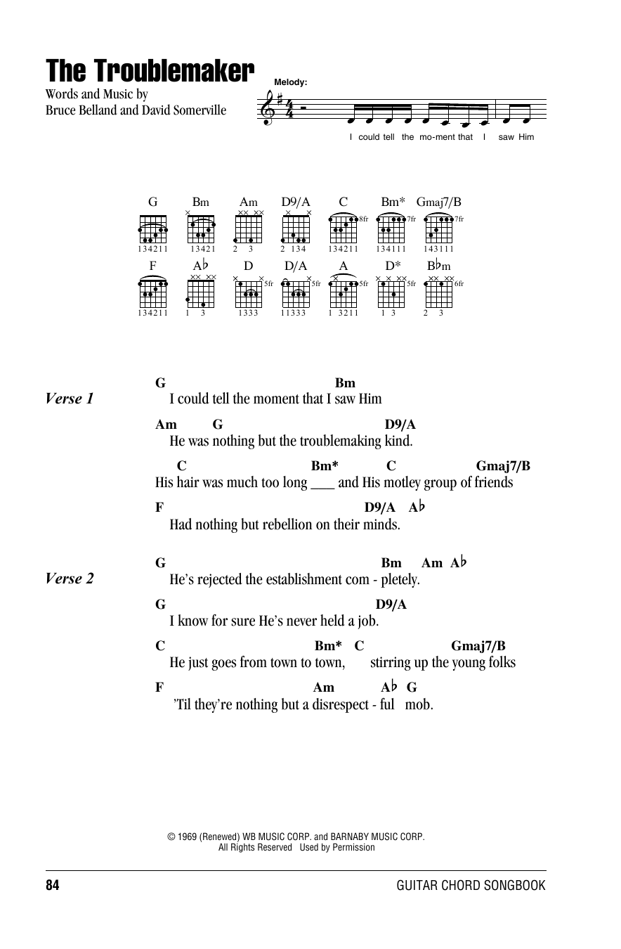 Download or print Willie Nelson The Troublemaker sheet music, chords and digital score arranged for Guitar Chords/Lyrics. This Country score includes 2 page(s).