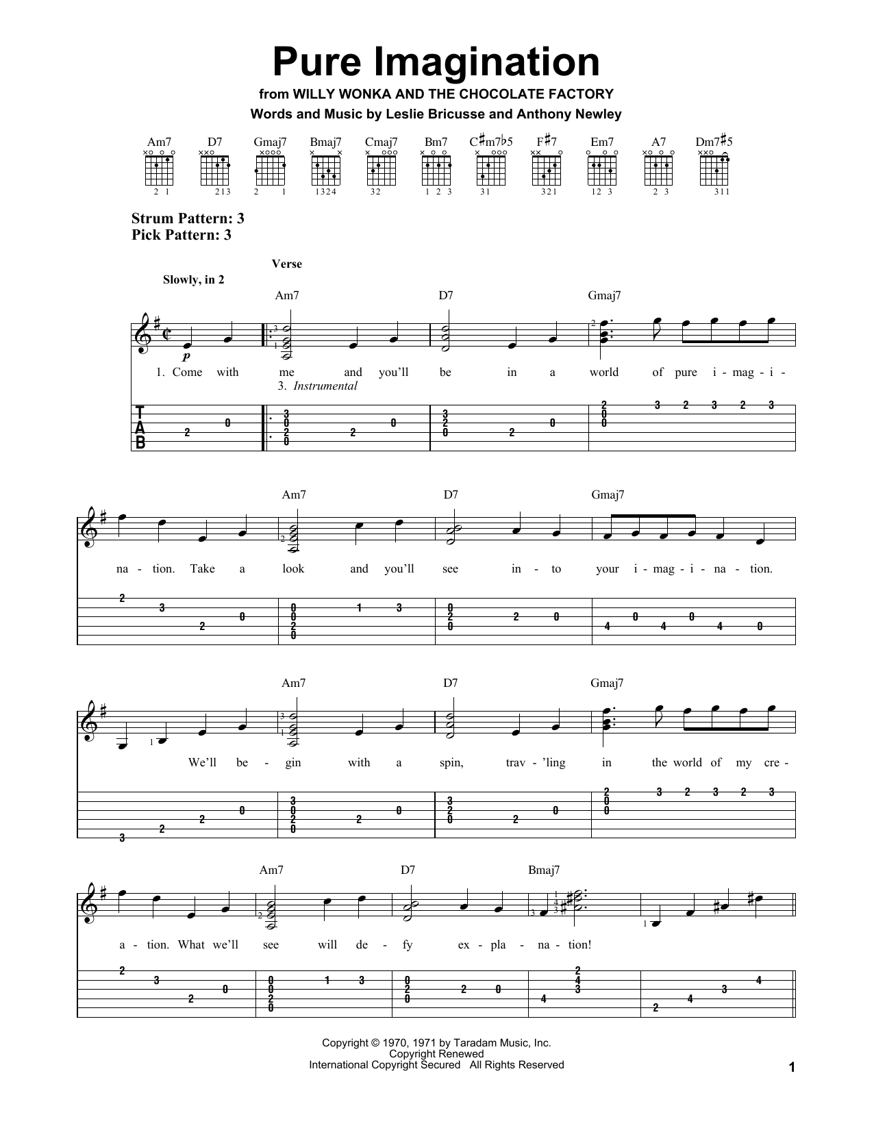 Download or print Willy Wonka & the Chocolate Factory Pure Imagination sheet music, chords and digital score arranged for Piano Solo. This Children score includes 2 page(s).